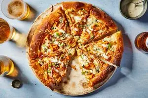 پیتزا چیکن آلفردو یکی از انواع پیتزاهای خوشمزه فست فودی است که از ترکیب خمیر پیتزا با مرغ گریل شده و پنیر تهیه میشود.